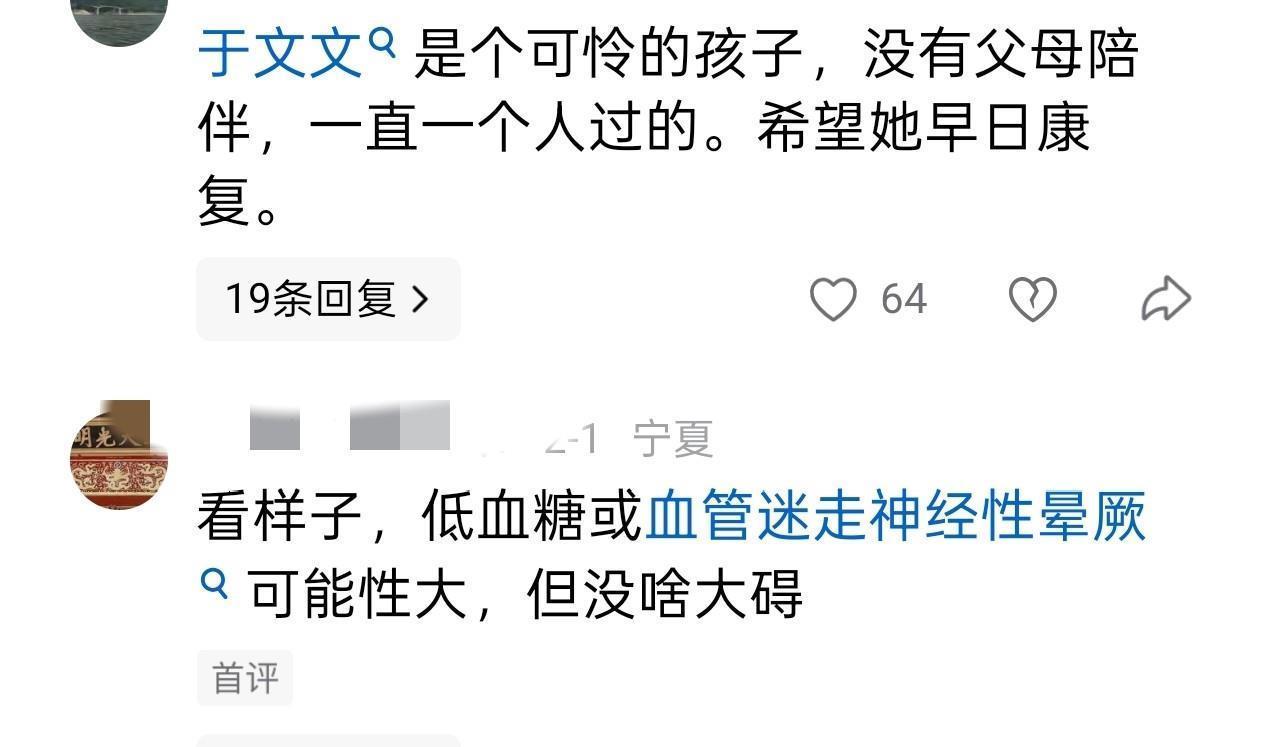 这次晕倒,说白了就是长期累出来的,身体实在扛不住了。网友们心疼她,不光是因为她是明星,更是因为好多人都能从她身上看到自己的影子——独自在外打拼,什么事都自己扛,不敢生病不敢停下。大家都在劝工作室别给她排那么满的行程,也希望她能好好歇一歇,别总把自己逼得太紧。现在于文文还在医院住着,具体什么原因晕倒还没说,粉丝们都在等着她的消息,满屏都是祝她早日康复的话。